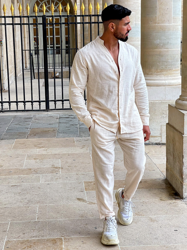 Dieser elegante Leinenanzug mit kubanischem Kragen bringt Stil und Komfort auf ein neues Level. Perfekt für sonnige Tage, egal ob am Strand, auf Reisen oder bei entspannten Freizeitaktivitäten, strahlt dieser Anzug eine mühelose Eleganz aus.